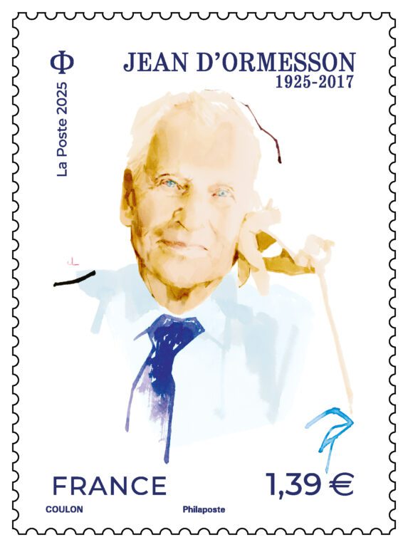 La Poste émet un timbre illustré par un portrait de Jean d’Ormesson, écrivain, journaliste et philosophe, né à Paris le 16 juin 1923 et mort à Neuilly-sur-Seine le 05 décembre 2017.