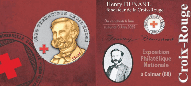 A l’occasion de l’exposition philatélique Nationale à Colmar, le Club Thématique Croix-Rouge a émis un collector représentant Henri Dunant, fondateur de la Croix-Rouge, et le club des Cinq ainsi qu’un partenariat de 110 ans avec La Poste.