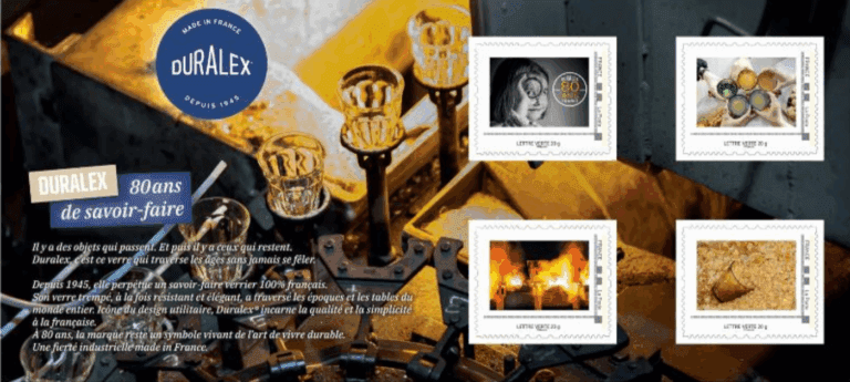 Le 1er décembre 2025, La Poste émet – en édition très limitée de 2000 exemplaires – un collector DURALEX, marque française bien connue qui a fait parler d’elle ces